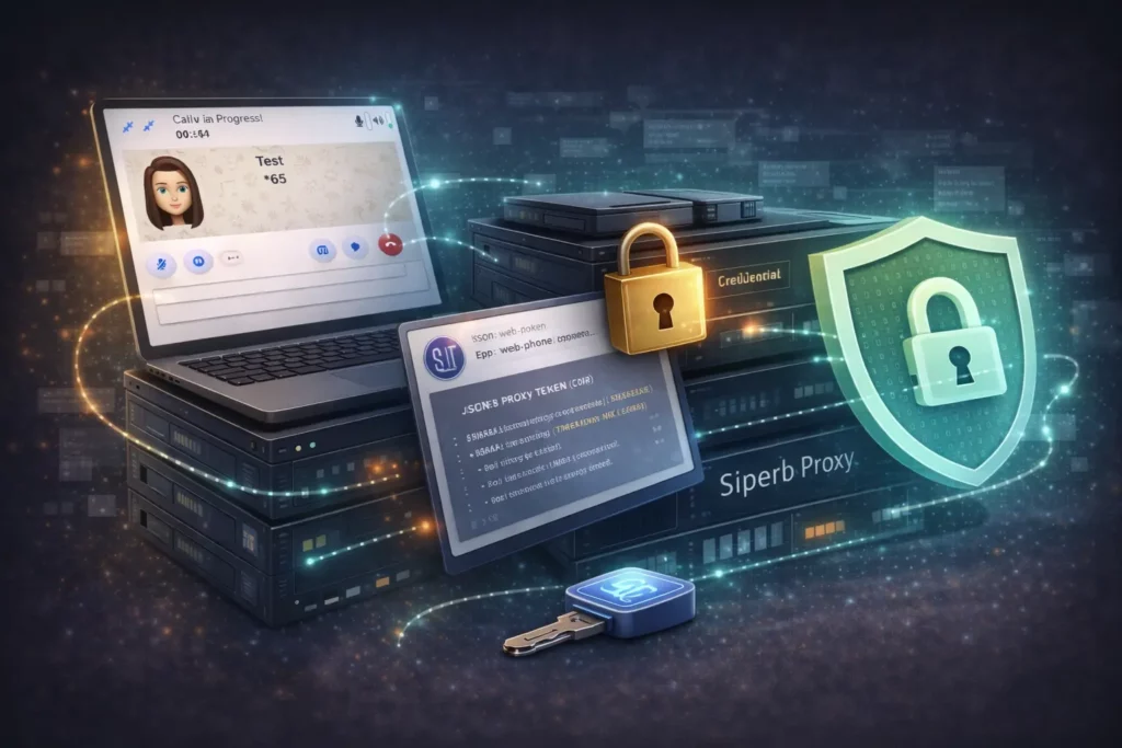 The Web Phone never stores or exposes real SIP credentials in the client. Instead, all sensitive SIP registration details live inside the Siperb Proxy, where they are protected and managed server-side. The browser authenticates using short-lived, scoped JWTs that represent identity and permissions, not passwords. This design eliminates credential leakage, prevents SIP reuse outside the intended context, and allows phones to be safely embedded into third-party systems such as CRMs without expanding the attack surface.